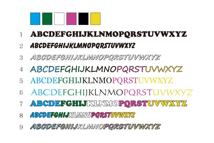 ※アルファベットの9の文字は、影部分のみのカラー配色となっております。