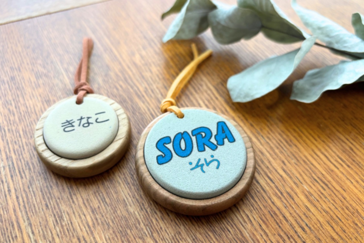 軽量かつ名入れができるので、ペットの首輪につけて目印としてお使いいただくのもおすすめです。